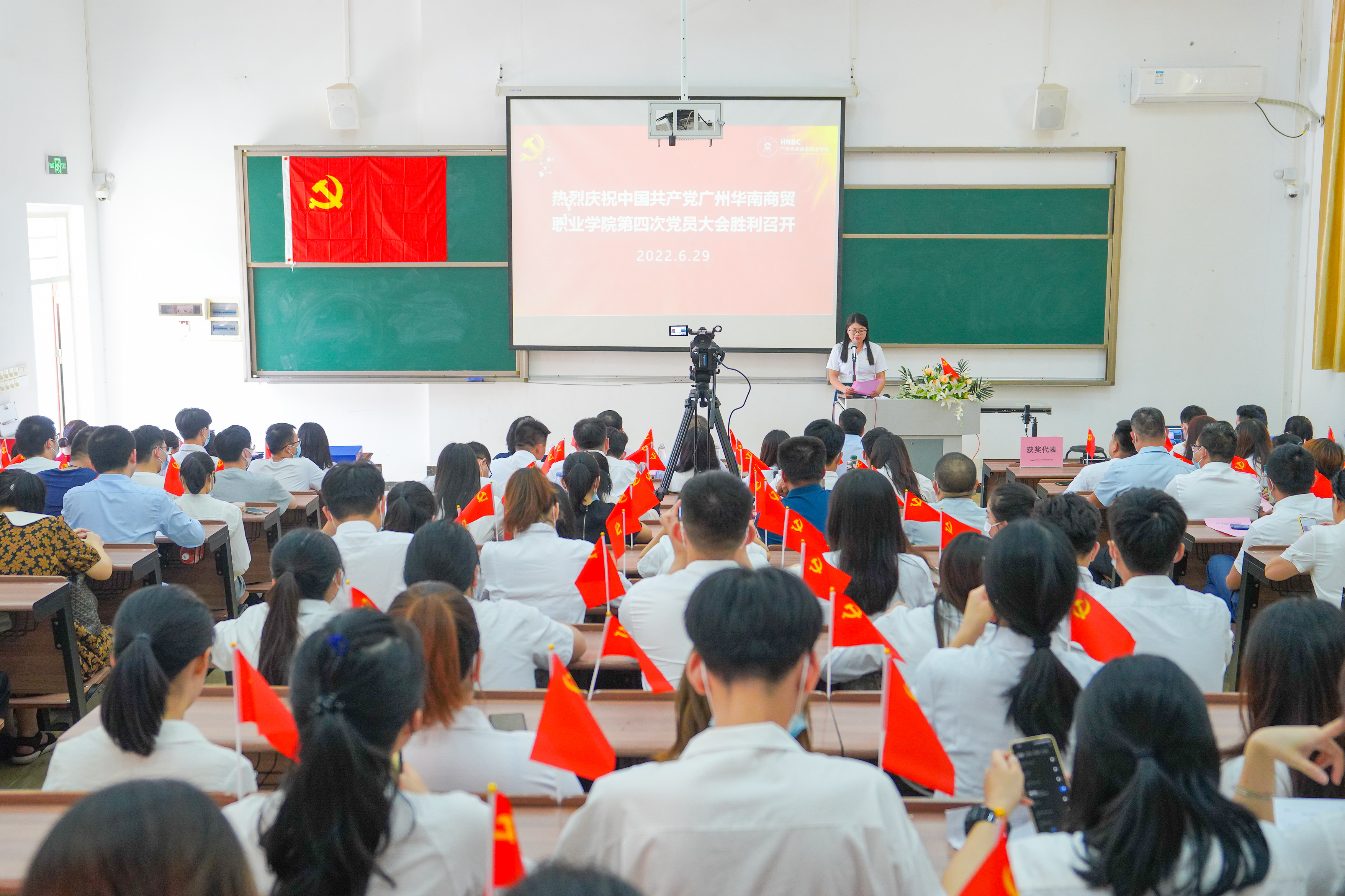 6月29日下午,中国共产党广州华南商贸职业学院第四次全体党员大会暨“七一”表彰大会在3-103主会场和3-102、3-101两个分会场胜利举行。广州华南商贸职业学院党委书记王书汉,党委副书记、校长刘剑清,党委委员、副校长郑雪梅,副校长刘金文出席会议,学校全体党员(含预备党员)共300余人参加了会议,大会由云智信息技术学院党总支副书记陈玉秀主持。