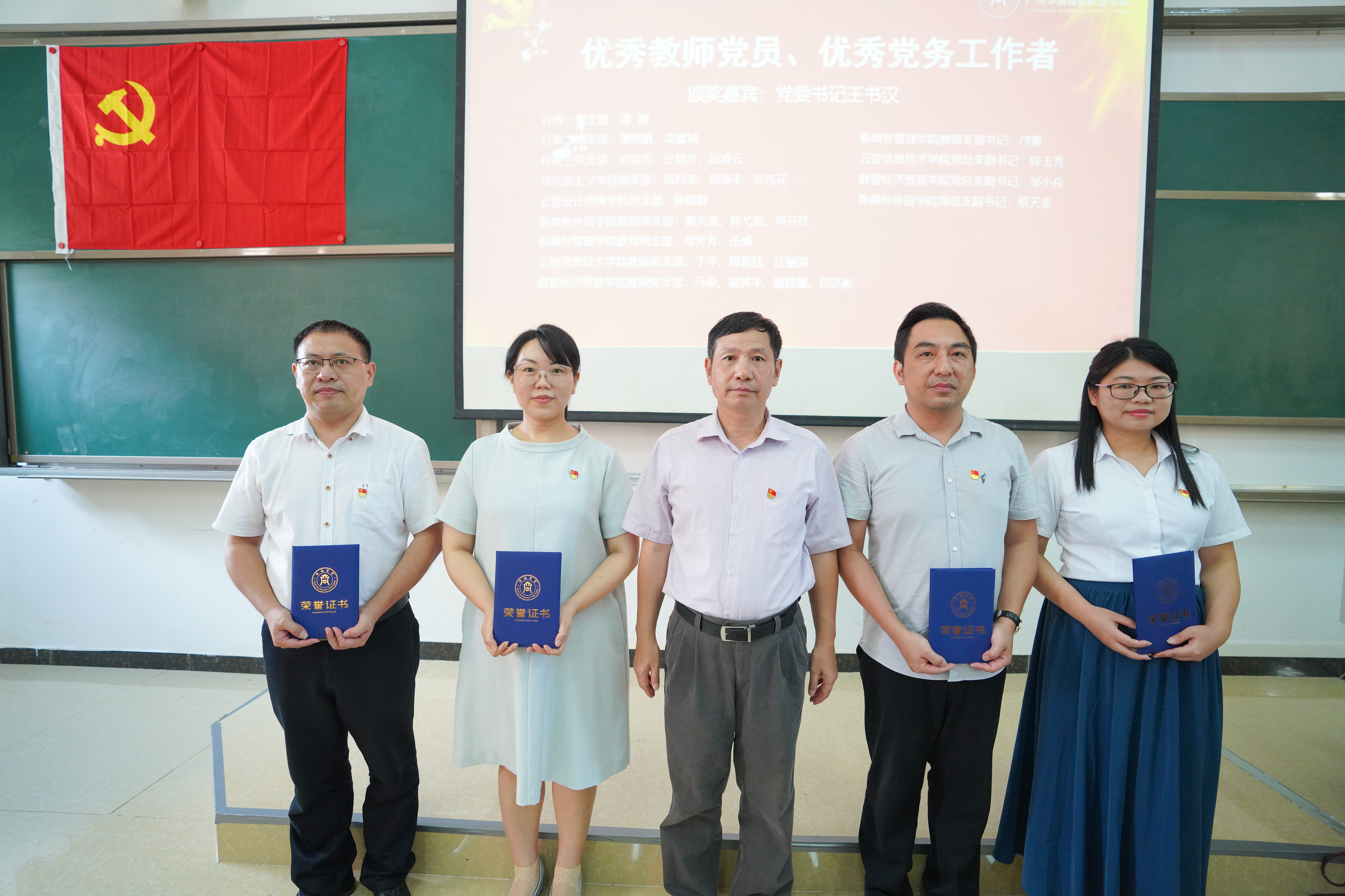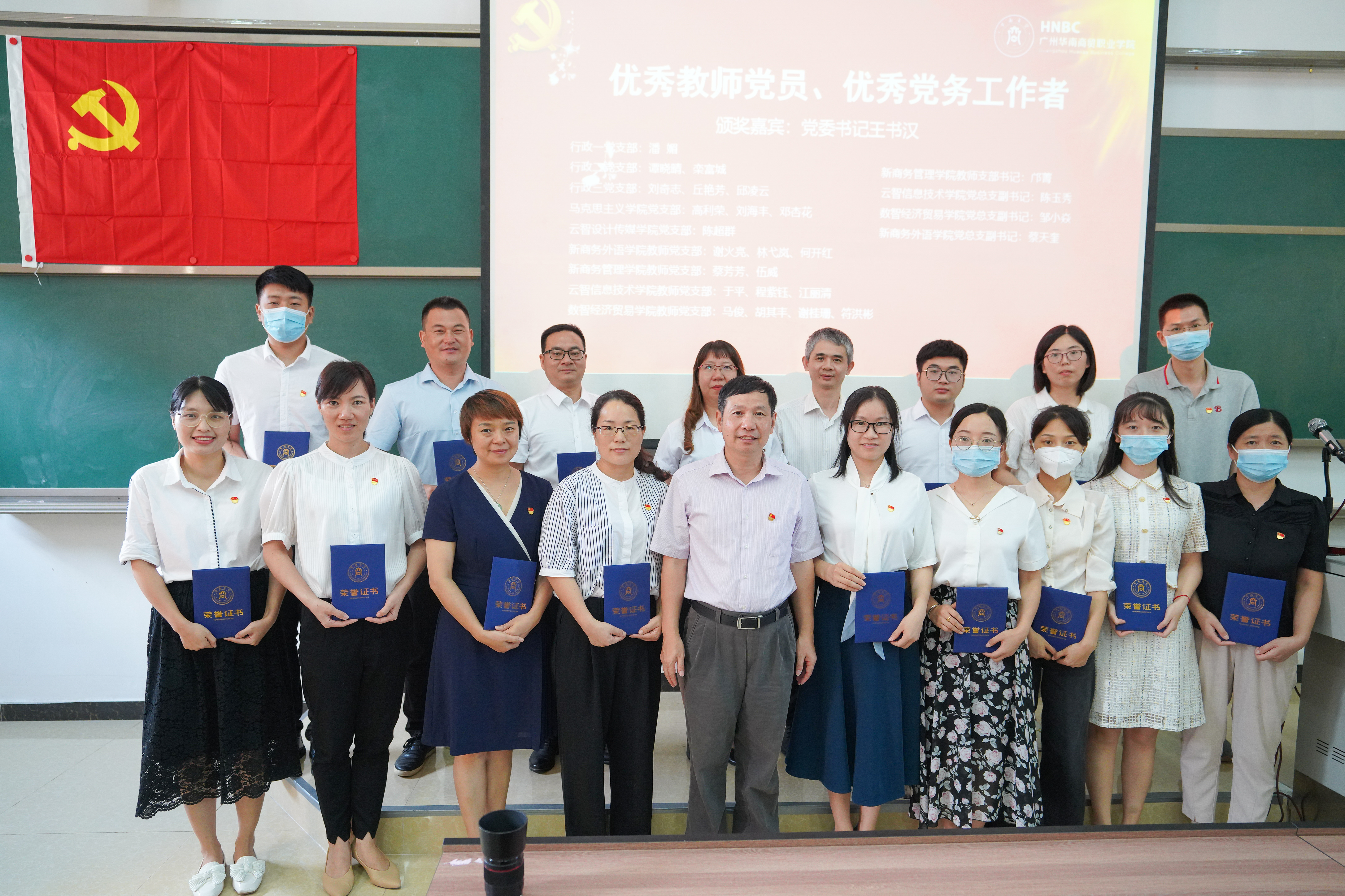 党委书记王书汉为马俊等22名教师党员、蔡天奎等4位优秀党务工作者颁奖,高度肯定了他们在过去一年里求真务实、立足岗位本职辛勤付出。