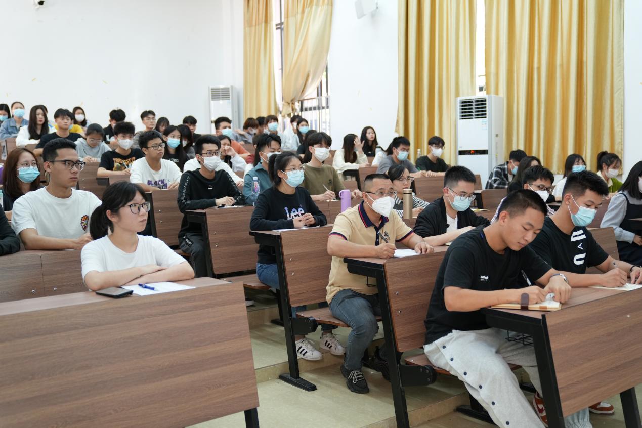 5月17日下午,党委书记王书汉围绕“认真学习习近平总书记在庆祝中国共产主义青年团成立100周年大会重要讲话精神,做新时代优秀大学生”为主题,带领大家重温讲话内容,结合实际重点讲解争做追求进步的模范青年:要做理想远大、信念坚定的模范;要做刻苦学习、锐意创新的模范;要做敢于斗争、善于斗争的模范;要做艰苦奋斗、无私奉献的模范;要做崇德向善、严守纪律的模范。同时提除了三点要求和期望:一是端正入党动机,增强对党的情感;二是明确努力方向,树立坚定的理想信念;三是理论联系实际,时刻以党员的标准严格要求自己。脚踏实地,磨炼意志,争做新时代的弄潮儿。