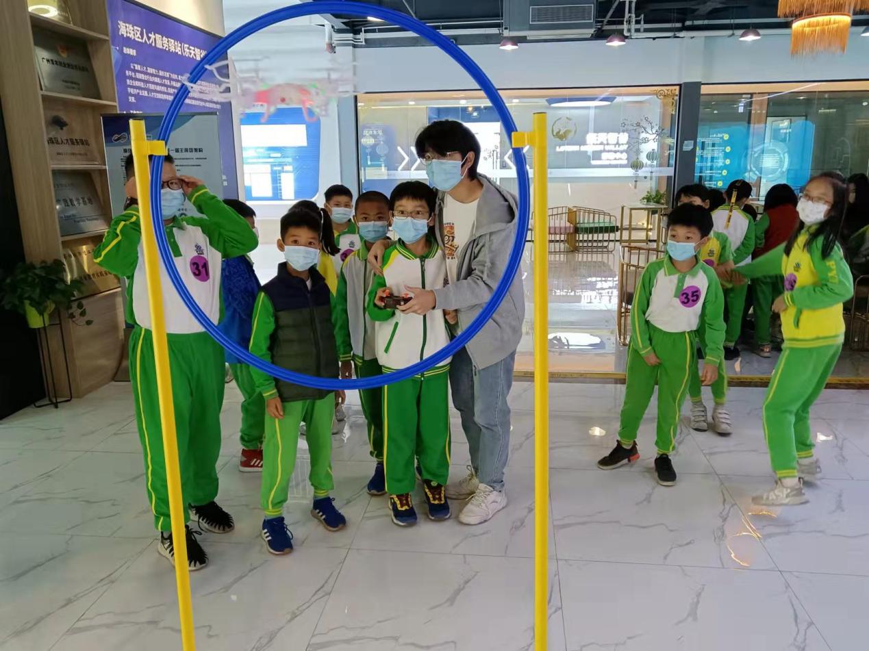 11月27日上午9时,数智经济贸易学院谢桂珊和胡其丰两名党员教师,带领2021级电子商务专业王锦豪、柯玉冰等10名入党积极分子前往琶洲乐天智谷(人工智能与数字经济广东省实验室)开展党建活动。此次,他们在广东省科学技术协会主办的2021粤港澳大湾区青少年科技交流活动中担任研学助教,指导来自广州市毓正小学等4所小学的200名学生开展无人机研学活动。