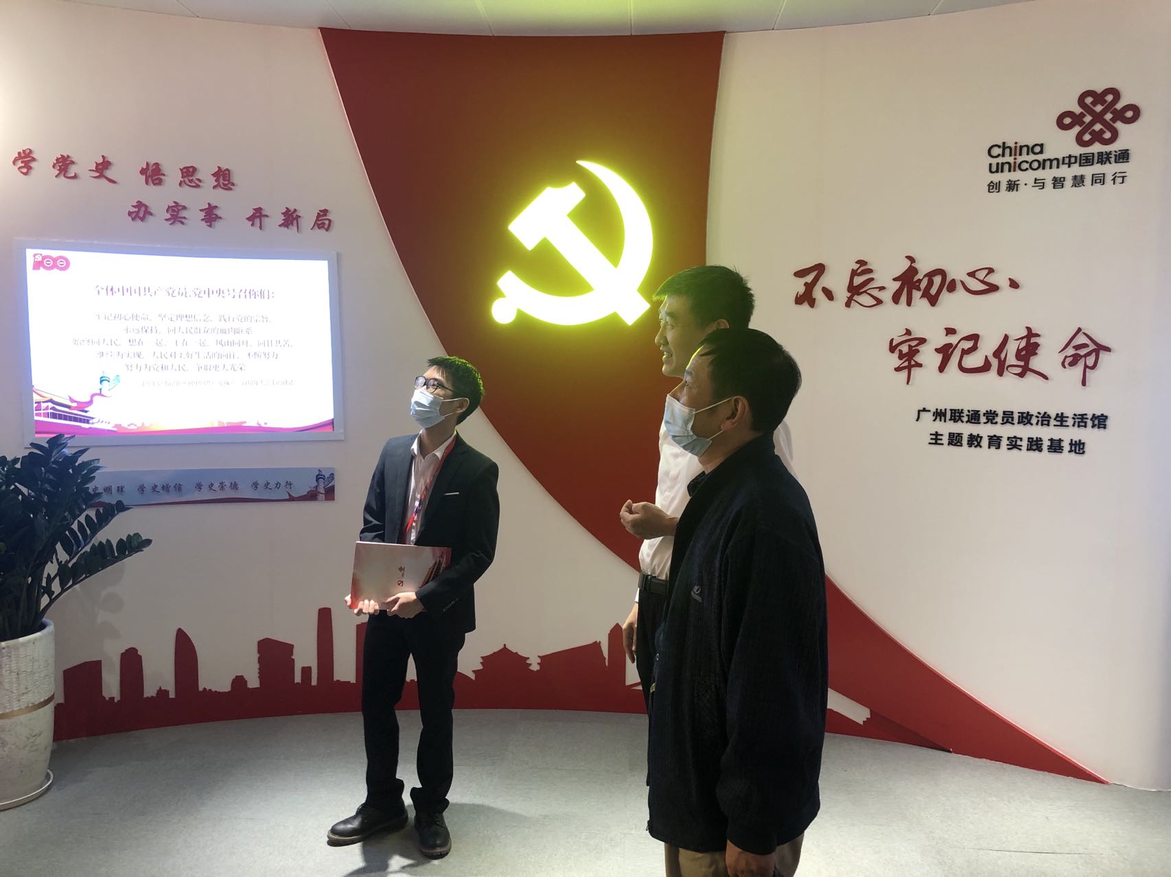 广州联通党员政治生活馆讲解员介绍公司党建工作情况
