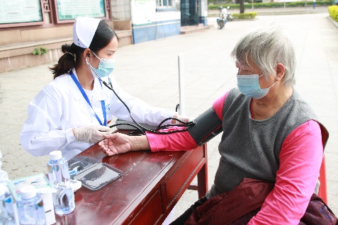 服务队师生志愿者到了村委中心后立即开始专业、严谨的服务工作,调试好专业测量仪器,热情地为村里的老人们测血压、测血糖、普及健康知识。“爷爷,您吃早餐了吗?”“奶奶,您平时锻炼多吗?”“爷爷,您平时有去医院体检吗?”这些问候拉近了华贸学子与村民们之间的距离。服务团成员们详细询问了老人们的身体状况,并耐心讲解了卫生保健知识、注意事项、饮食安全等卫生常识,受到了爷爷奶奶们的一致好评。