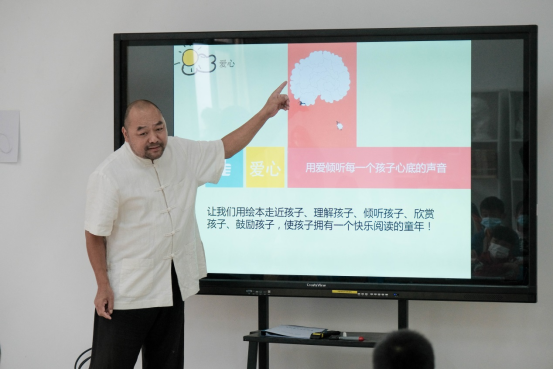 侯石明老师的课程主题为《好绘本,如何读——绘本带给孩子的七大素质》。他认为好的绘本可以培养孩子的三心三力一审美,即爱心、善心、自信心,想象力、专注力、创造力,审美观。并为在场的家长们推荐了适合孩子在童年时期阅读的经典绘本。