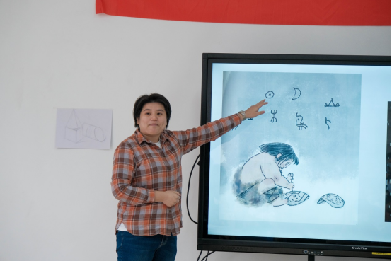 最后,苗苗副院长代表学校向白土村赠送侯老师的原创绘本,白土村的孩子可以直接在村里的画室免费借阅观看。系列活动会持续开展,下一次活动,华贸的老师们将去到白土村为孩子们上课。