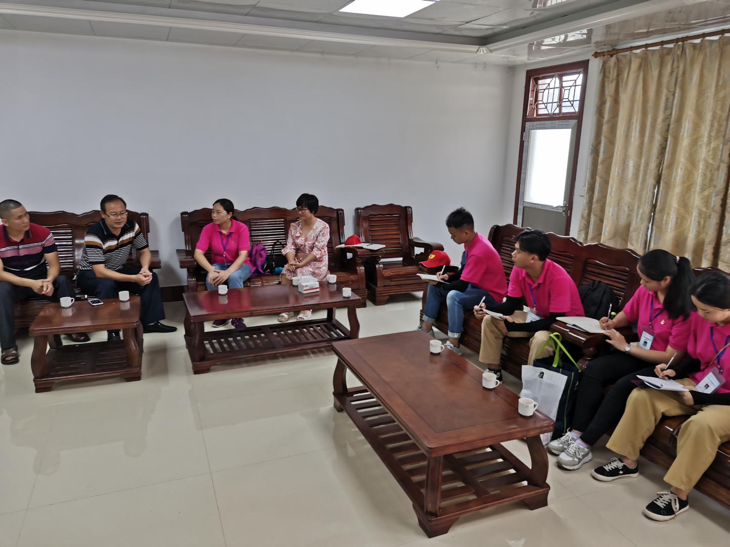 下午,队员又马不停蹄前往八尺镇党政服务中心进行调研,受到林东亮镇长的热情接待,林镇长介绍了八尺镇的以红色文化助推乡村振兴的经验做法,八尺镇围绕“产业兴旺、生态宜居、乡风文明、治理有效、生活富裕”的总体要求,做强酒业,壮大特色种养规模,注重保护原始生态;特别介绍到角坑村以南粤古驿道定向大赛为契机,充分挖掘古驿道背后的红色历史,重现红色记忆,探索酒旅农商相融合的发展模式,通过旅游产业发展聚集人气,带动八尺酒业、农业和第三产业发展,进一步创造更多的就业岗位,拓宽群众就业途径,让百姓受益。