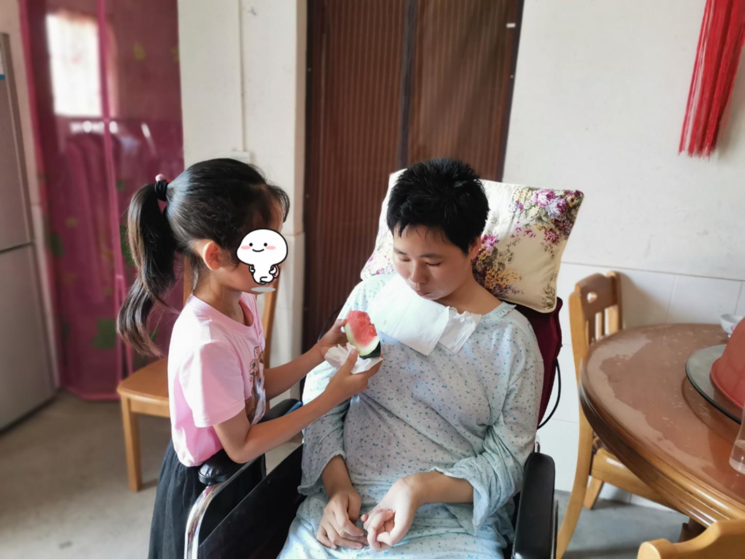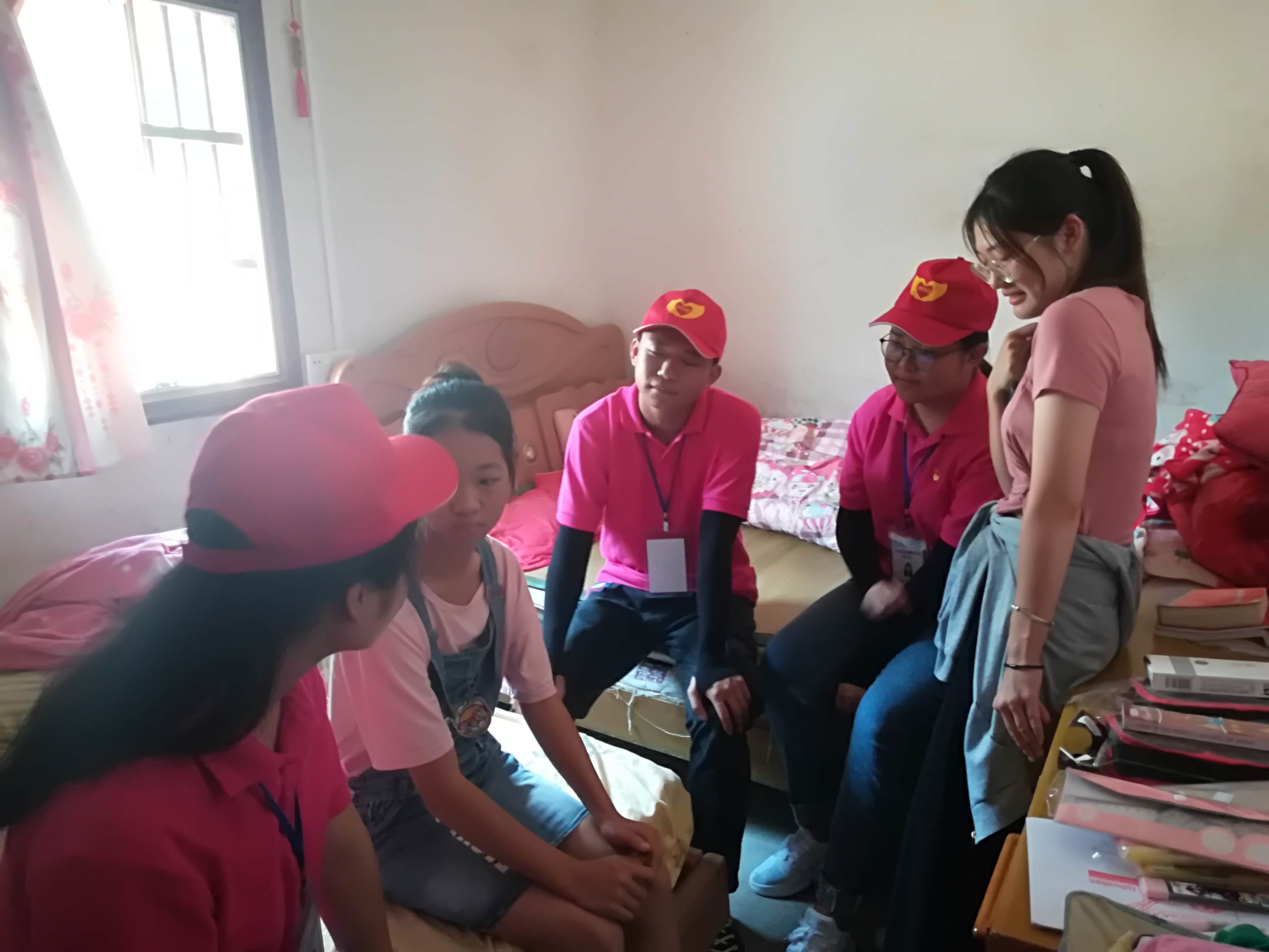 参观之余,“初心”队积极践行党的宗旨,发扬奉献精神 ,跟随义工队员前往仁居镇邹坊村回访特困家庭,了解因车祸造成重伤的马女士身体恢复情况及其家庭生活情况,特别是其两女儿的学习情况。幼小的两姐妹平时除了要帮忙料理家务、完成学习外,大部分时间需要帮忙照顾重病的妈妈。交谈过程中,也发现两姐妹乖巧懂事,善良孝顺,但成绩稍不稳定,因妈妈的病情心理负担较重,队员们为两姐妹准备学习用品,并以哥哥姐姐身份分享学习经验、引导他们树立自信自强,乐观积极面对生活。
