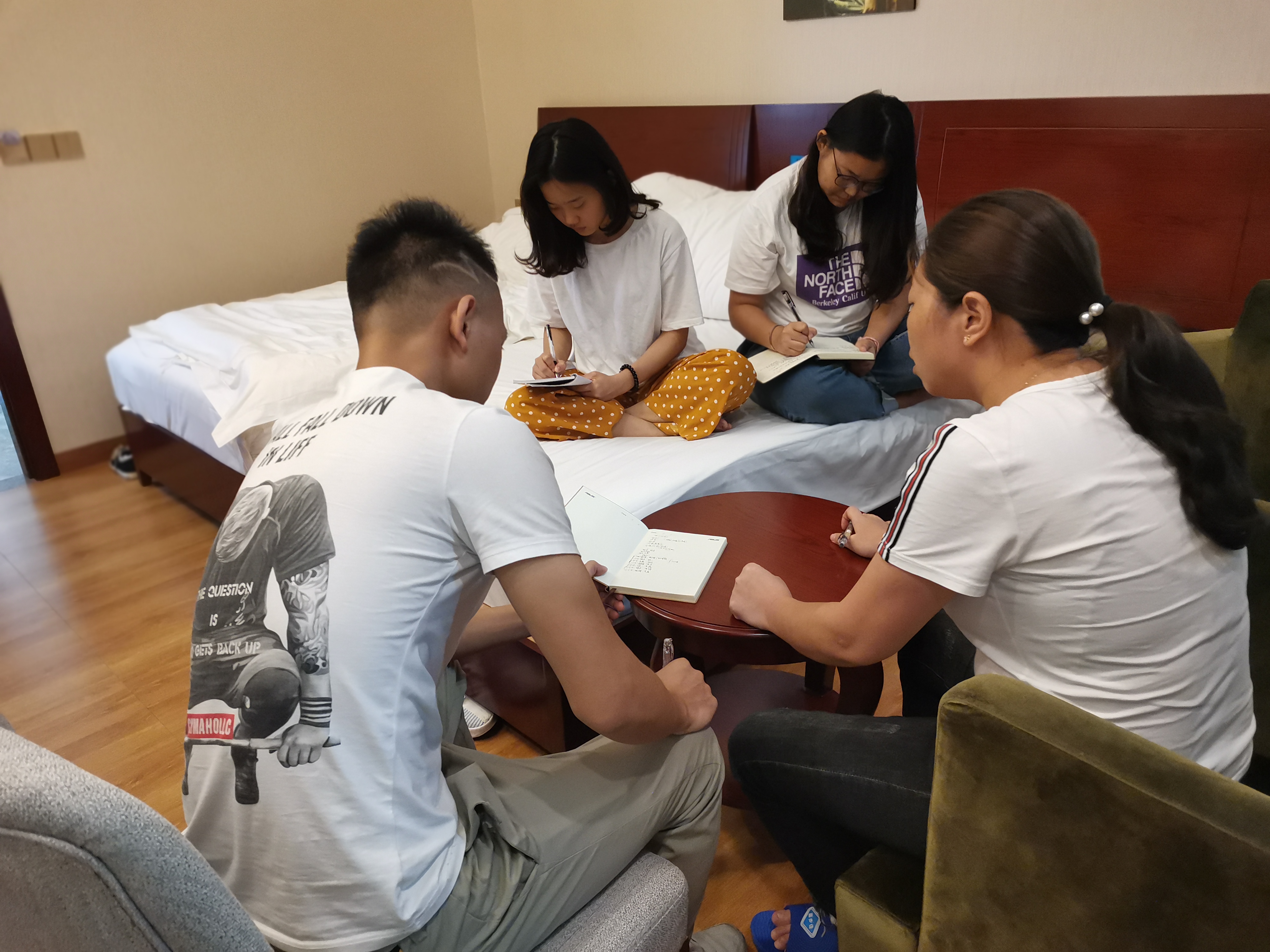 “初心”队成员在住宿处稍作休息后随即召开工作会议,会议上,指导老师人文与外语系党支部书记江金霞就实践主题、内容、行程安排、工作分工等方面作进一步细化部署。组织部陈玉秀部长则再次强调安全意识、团队意识和责任意识,为后期活动开展打下良好的思想基础。