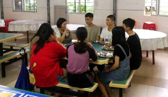 副院长郑雪梅、组织部长陈玉秀和信工系学生共进午餐