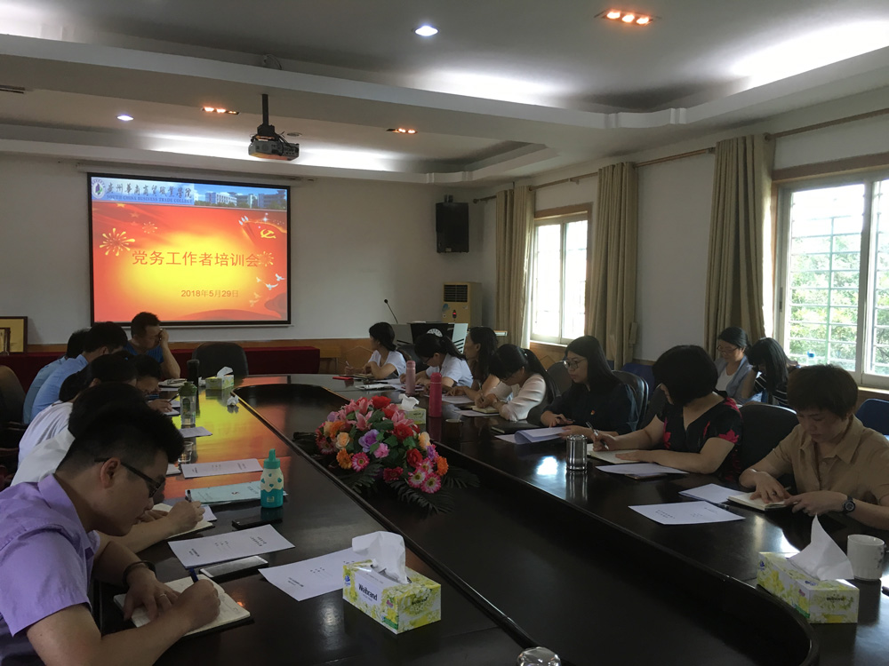 为深入学习宣传贯彻党的十九大精神,扎实推进“两学一做”学习教育常态化制度化,进一步加强基层党组织建设,提升基层党务工作队伍的整体素质和履职能力,增强党组织的创造力、凝聚力和战斗力,提升党务工作者党务能力,提升党建工作业务本领,推动我院党建工作再上新台阶。5月29日上午,我院举行党务工作者业务能力专项提升培训。各基层书记、党务工作者和辅导员近40人参加培训学习。