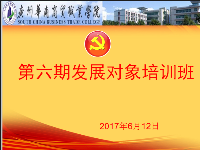 为保证发展党员质量,2017年6月12-14日学院第六期入党发展对象培训班如期举行,来自各系的40名入党发展对象参加了培训班学习会。